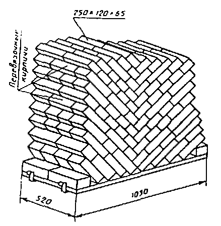 Примечание. По соглашению предприятия - изготовителя кирпича со строительными и транспортными организациями допускается изготовлять и применять для доставки кирпича поддоны размерами 750 х 1300 мм при наличии на строительстве грузозахватных приспособлений, обеспечивающих безопасность при подъеме пакетов кирпича к рабочему месту каменщика.