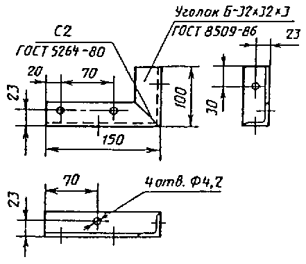 1 - настил; 2 - упор; 3 - уголок; 4 - уголок;