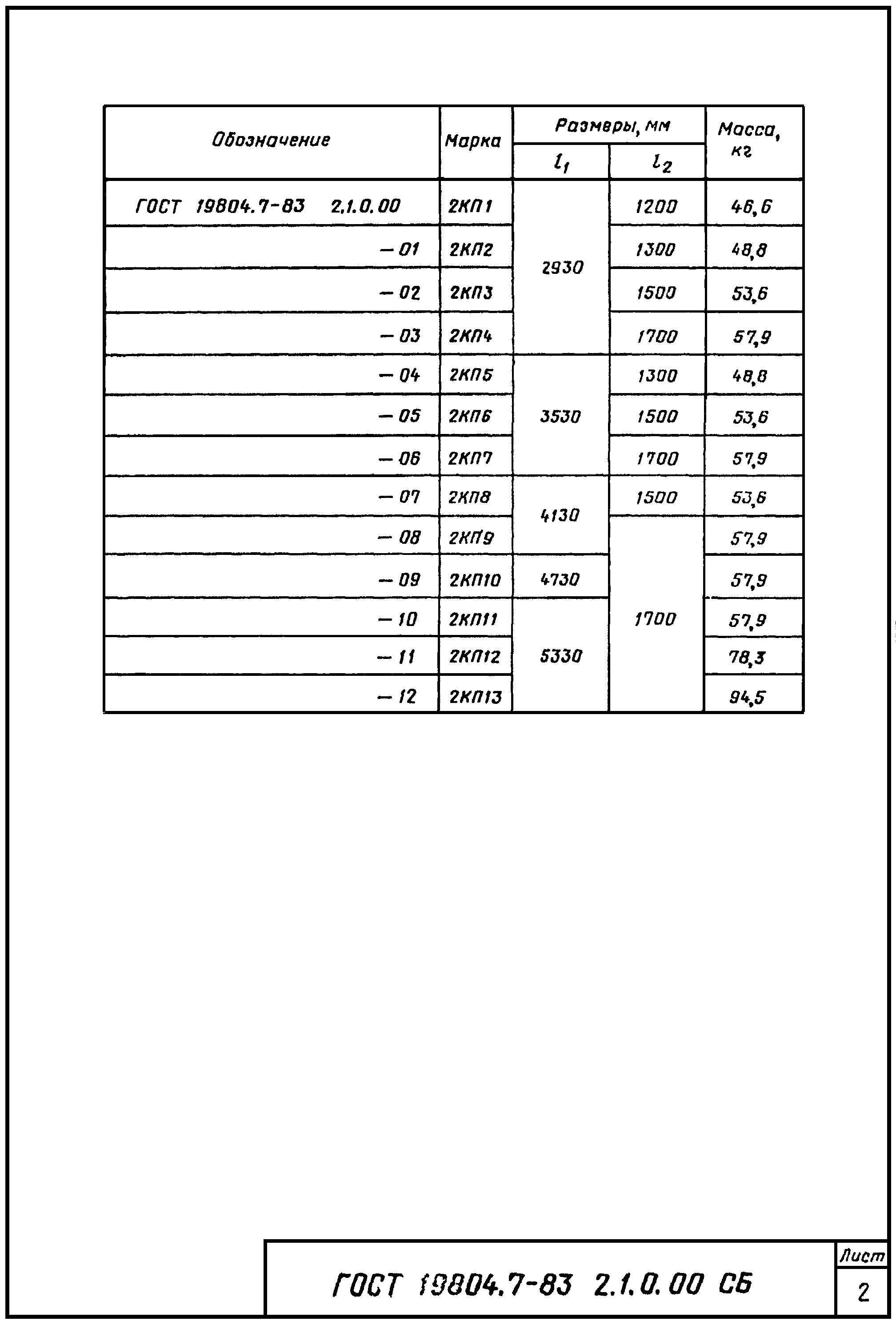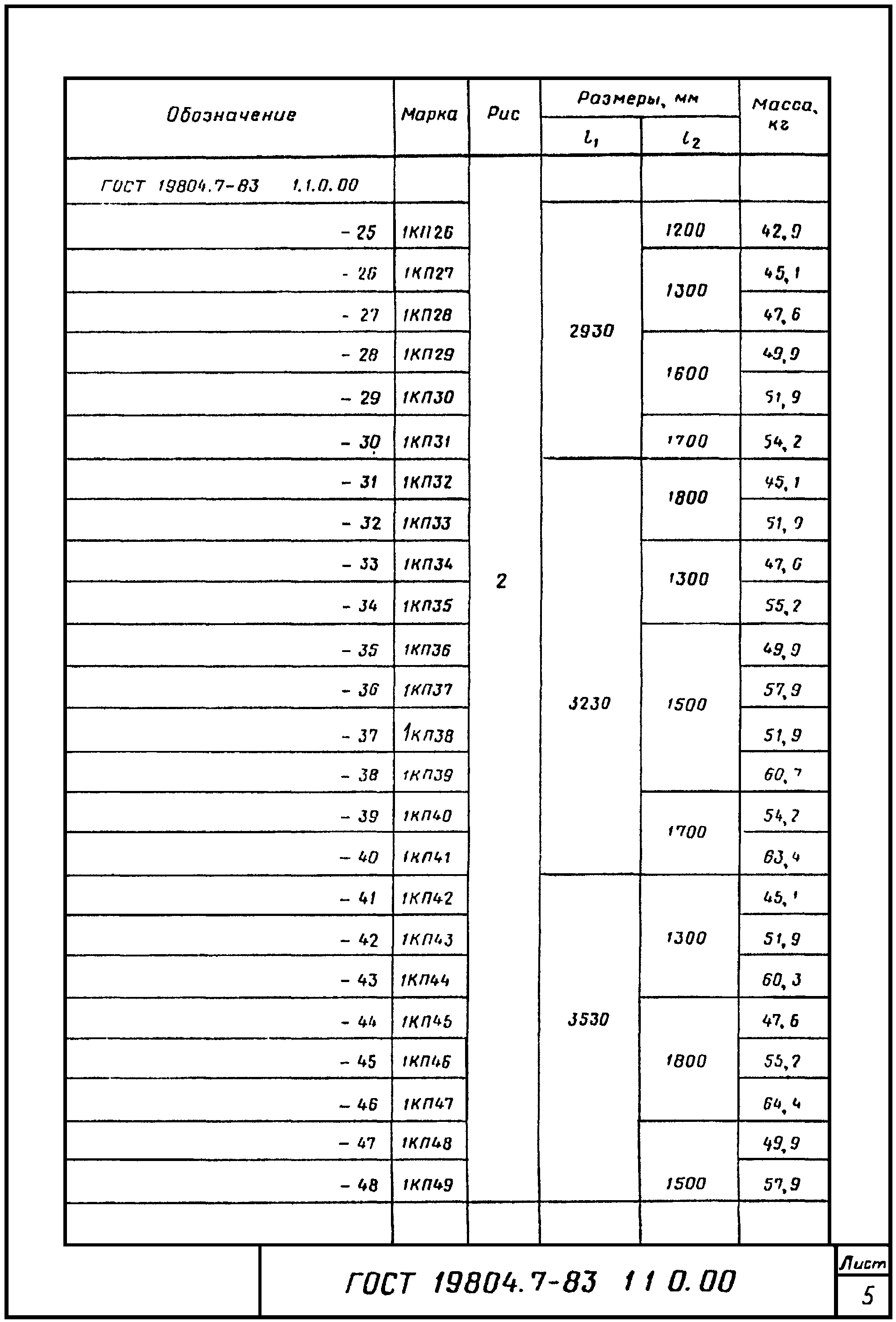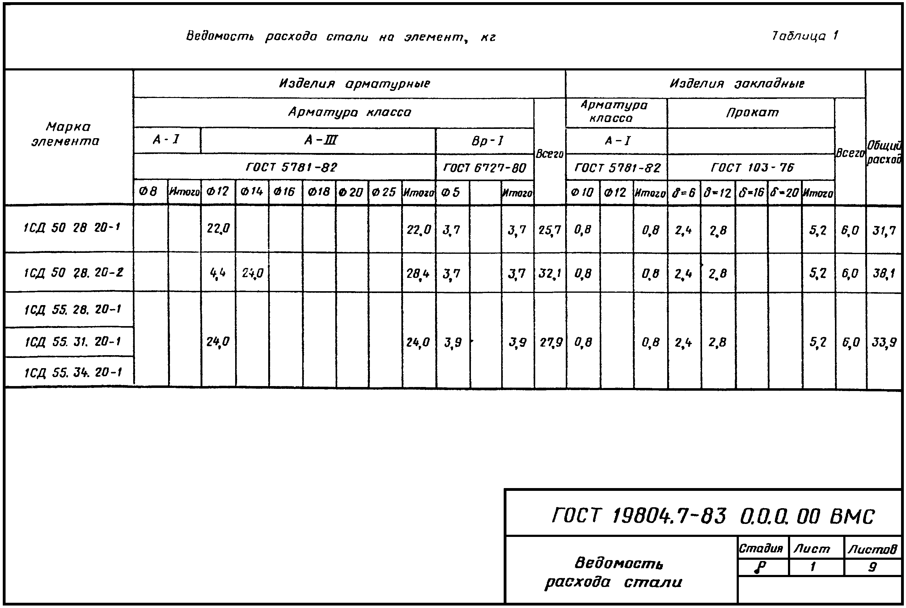1. МАРКИ И ОСНОВНЫЕ РАЗМЕРЫ