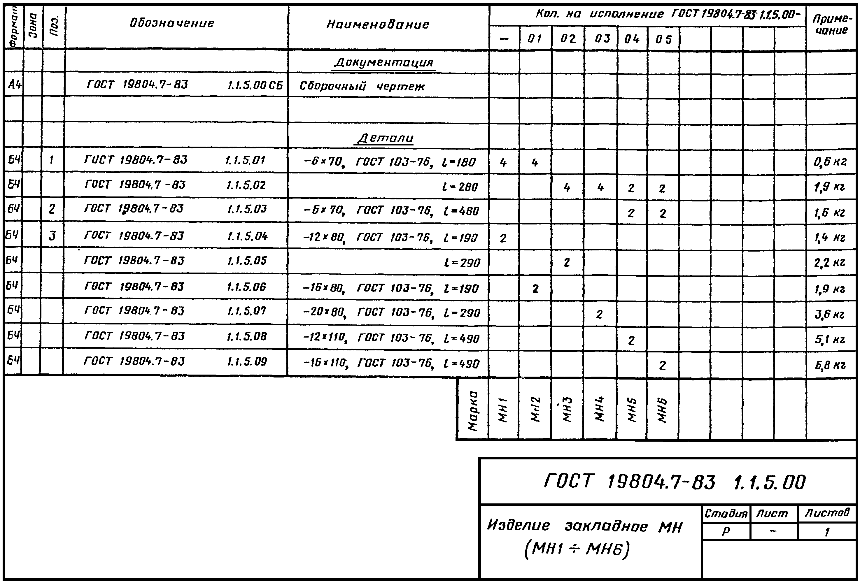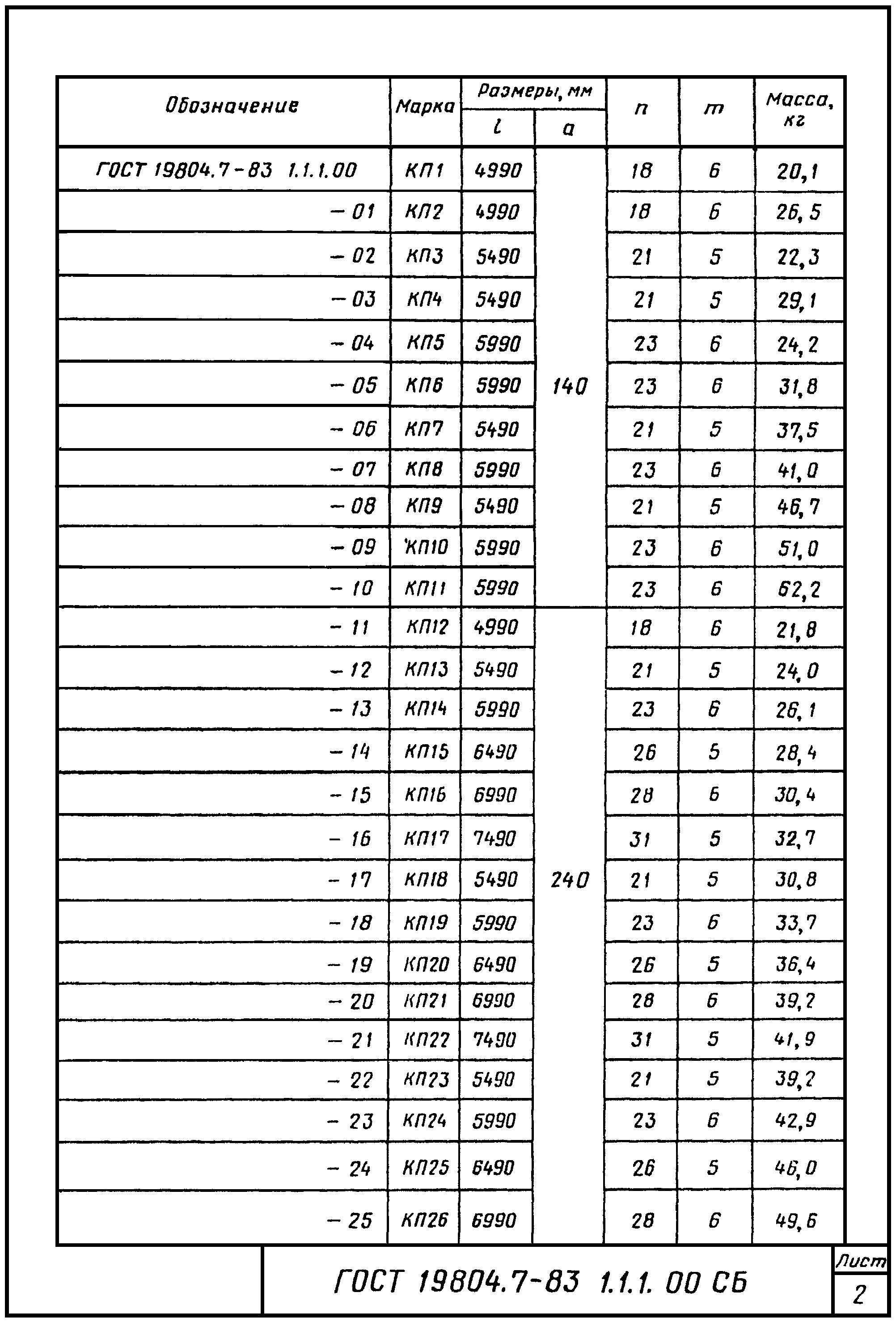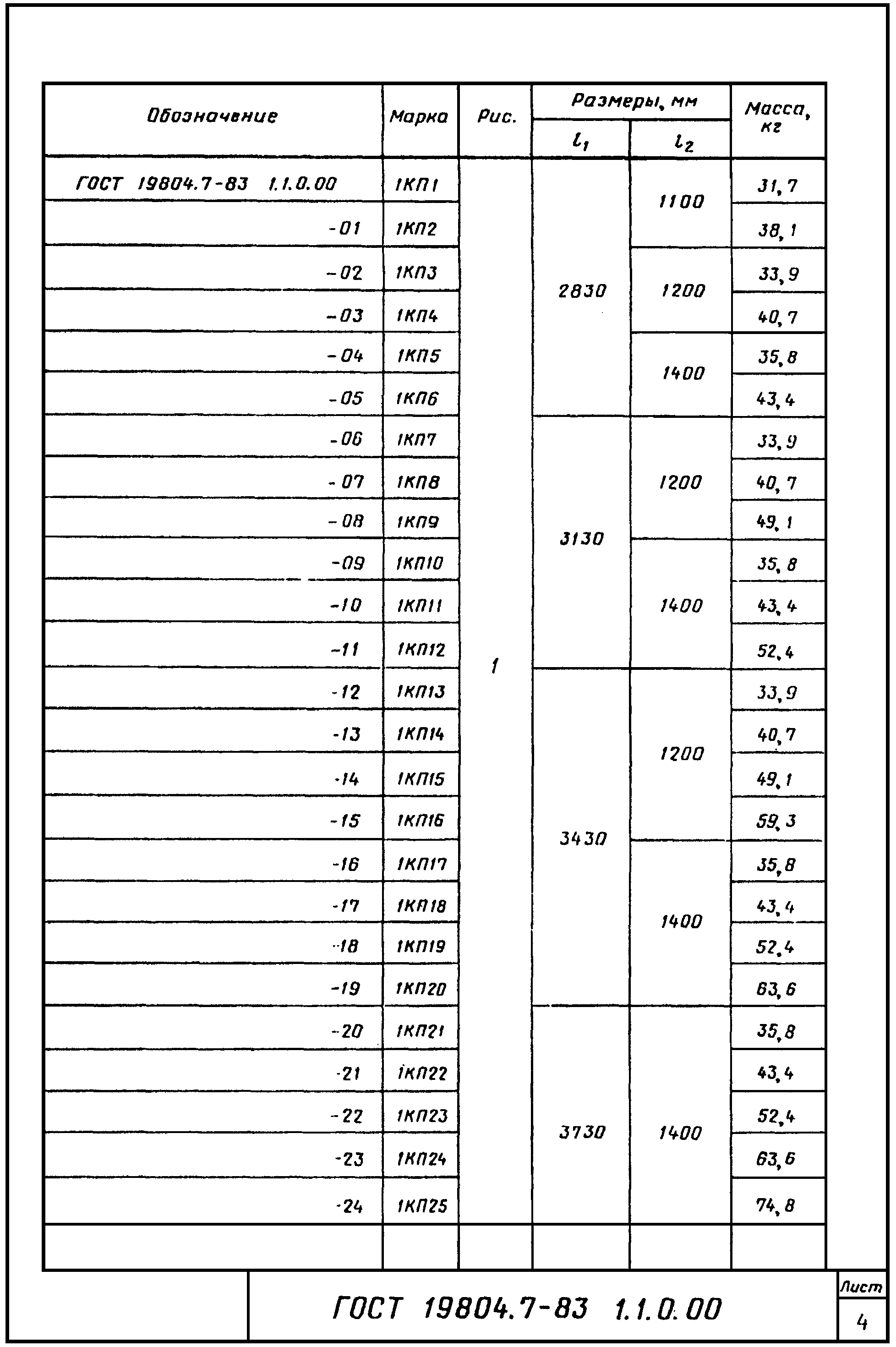 1. МАРКИ И ОСНОВНЫЕ РАЗМЕРЫ
