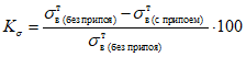 , % - отношение величины изменения временного сопротивления материала в контакте с жидким припоем к величине временного сопротивления без припоя на поверхности;