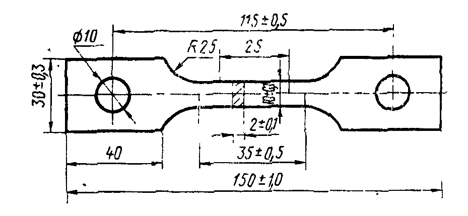2.2. Форма и размеры образцов должны соответствовать указанным на чертеже.