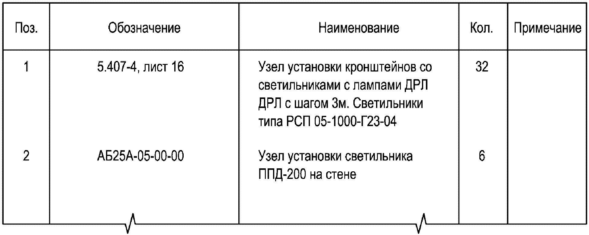 Примечание. Допускается не указывать: количество светильников при небольшом их числе в помещении; количество ламп для одноламповых светильников; высоту установки для потолочных светильников. |