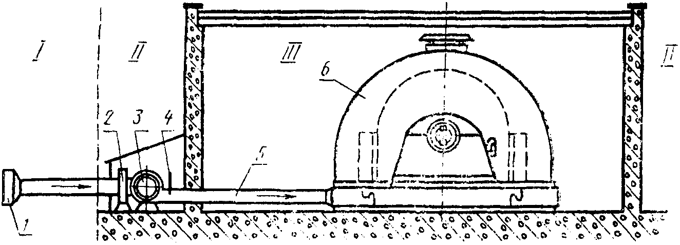 газопровод; 5 - заслонка для регулирования величины