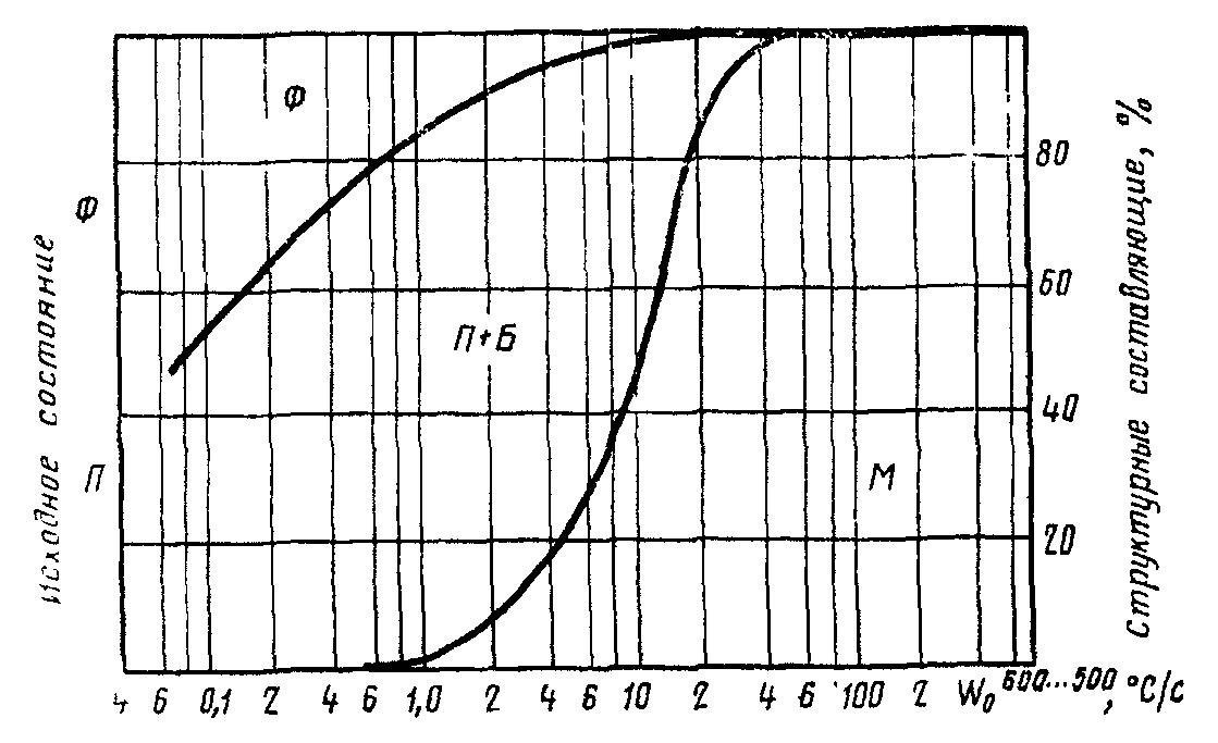 (Ф - феррит, П - перлит, Б - бейнит, М - мартенсит)
