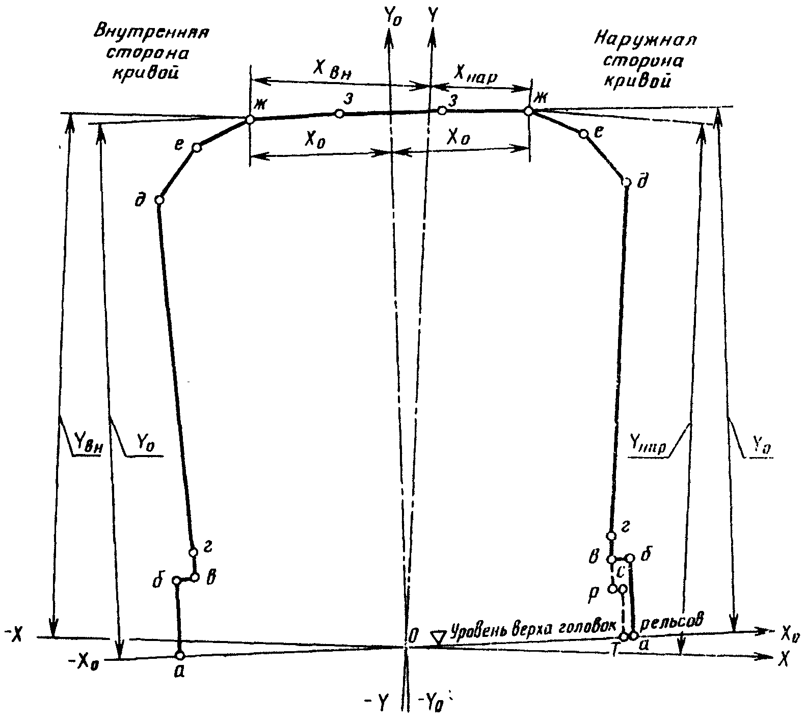 , мм, габарита М для определения строительного очертания рамы тележки и укрепленных на ней деталей следует производить по формулам, приведенным ниже: