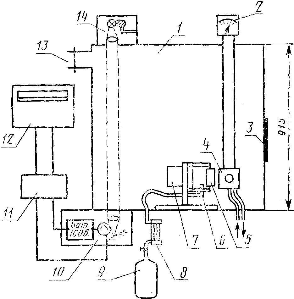 система фотометрическая для измерения интенсивности светового потока, состоящая из источника света 14 (лампа накаливания типа К12-30), приемника светового потока 10 (фотоэлемент типа Ф-3) со спектральной чувствительностью, близкой к спектральной чувствительности человеческого глаза, усилителя постоянного тока 11 с пределами от