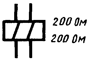 1. Около прямоугольника или в прямоугольнике допускается указывать величины, характеризующие обмотку, например, катушка с двумя обмотками, сопротивление каждой 200 Ом | |