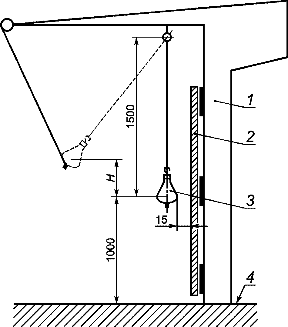 Длина подвески (расстояние от нижней части крюка до точки, наносящей удар по испытуемой панели) должна быть не менее 1,5 м.