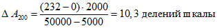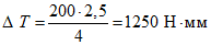 где 2,5 деления - разность между заданным приращением отсчета (15,5 делений) и полученным приращением в 13 делений (при T = 50000 Н·мм).