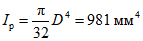 Примечание. Для образца круглого сечения диаметром D полярный момент инерции вычисляют по формуле