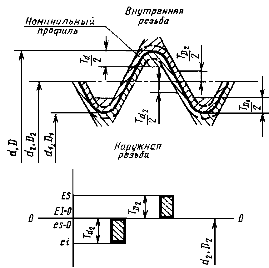 ES - верхнее отклонение среза вершины и впадины внутренней резьбы;