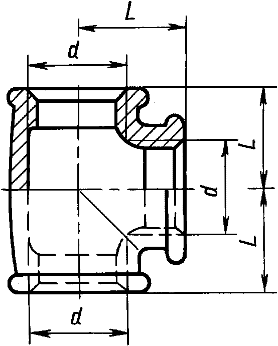 "ГОСТ 8948-75. Межгосударственный стандарт. Соединительные части из ковкого чугуна с цилиндрической резьбой для трубопроводов. Тройники прямые. Основные размеры"