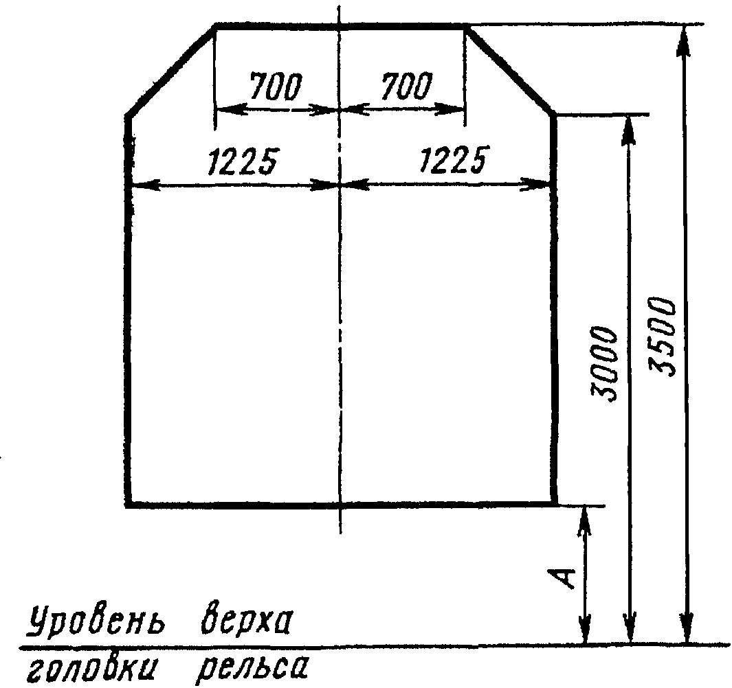 (черт. 4) - предельное поперечное (перпендикулярное оси пути) очертание, в котором должен размещаться груз (с учетом упаковки и крепления) на открытом подвижном составе при нахождении его на прямом горизонтальном пути.