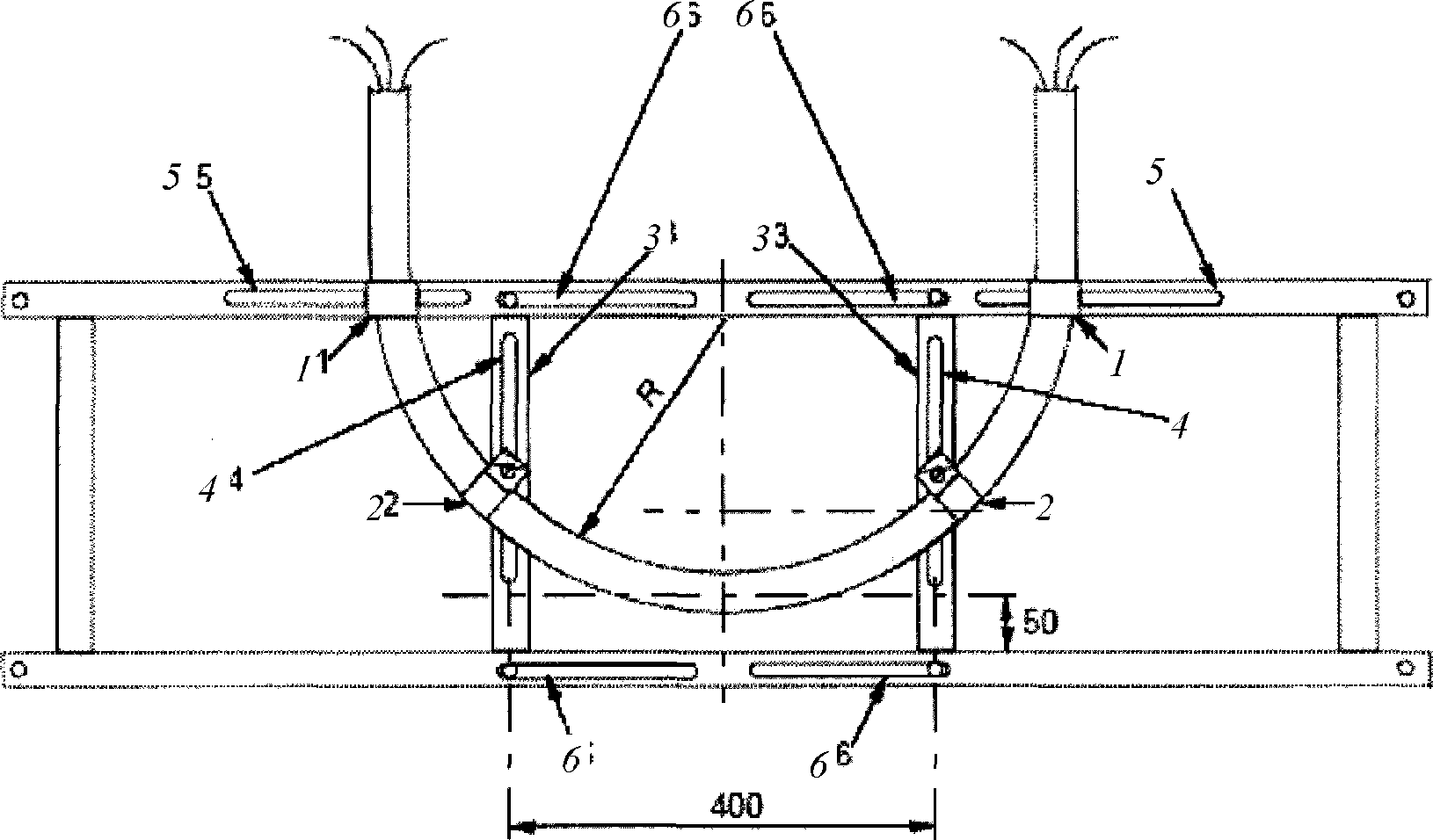 1 - опоры для термопар; 2 - кончик термопары; 3 - горелка;