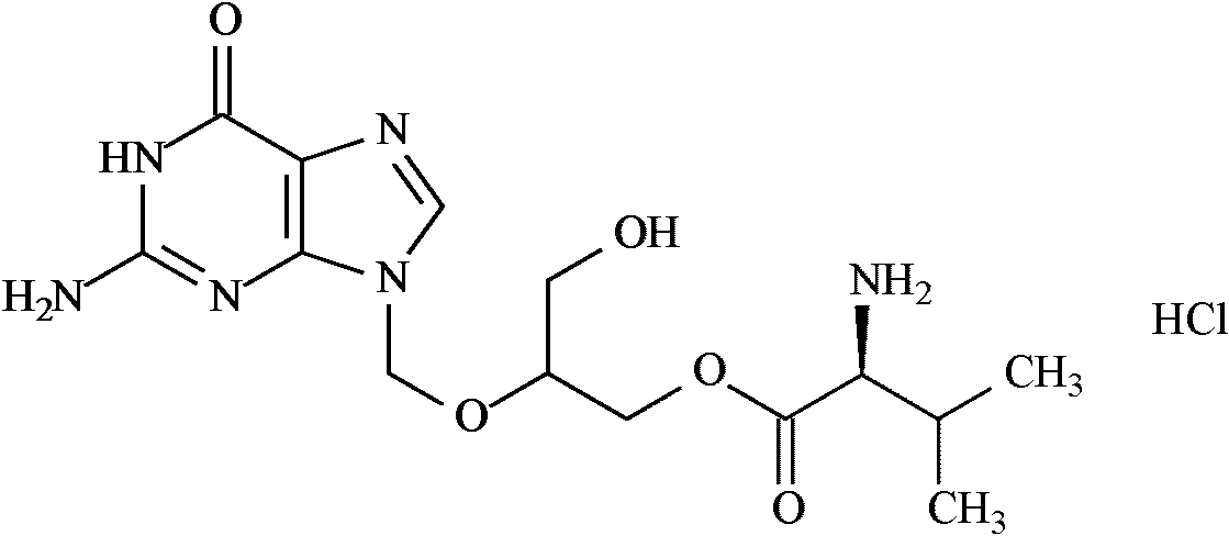 [(2RS)-2-[(2-Амино-6-оксо-1,6-дигидро-9H-пурин-9-ил)метокси]-3-гидроксипропил][(2S)-2-амино-3-метилбутаноата] гидрохлорид (1:1).