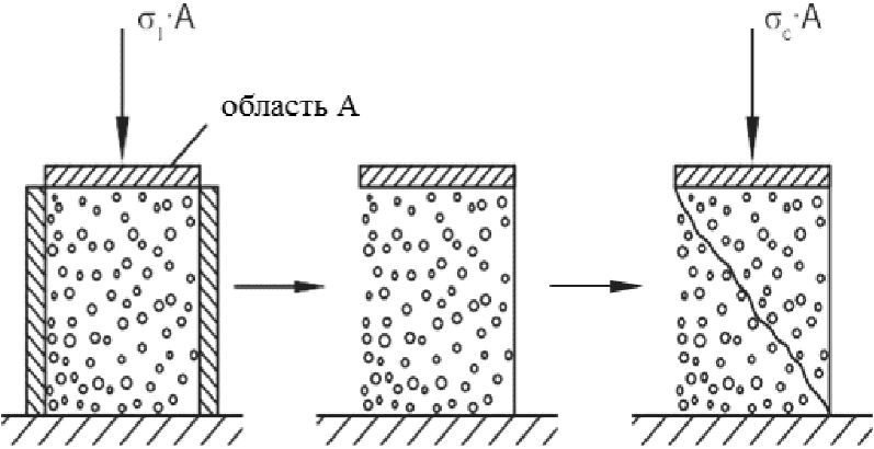Испытание на одноосное сжатие, схема которого приведена на