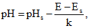 Es - потенциал того же электрода в растворе с известным значением pH (стандартном растворе), мВ;