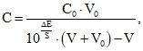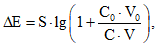 К объему V испытуемого раствора, приготовленного как описано в фармакопейной статье, прибавляют объем V0 стандартного раствора с концентрацией C0. Контрольный раствор готовят в тех же условиях. Измеряют потенциалы испытуемого и контрольного раствора до и после прибавления стандартного раствора. Вычисляют концентрацию С анализируемого иона, используя следующее уравнение и делая необходимые поправки на контрольный раствор: