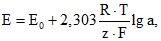 коэффициент, который означает изменение электродвижущей силы на единицу изменения lg a, и может быть рассчитан по формуле при любой температуре: