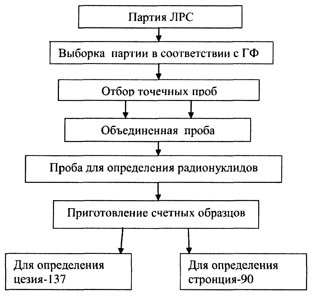 Порядок отбора проб ЛРС/ЛРП включает выделение однородной по радиационному составу пробы для приготовления счетных образцов. Отбор проб проводят в соответствии с требованиями