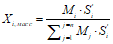 Относительное содержание вещества как доля компонента в смеси компонентов фармацевтической субстанции определяется методом внутренней нормализации. Мольная (Хмоль) и массовая (Хмасс) доля компонента i в смеси n веществ определяется по формулам: