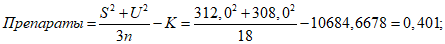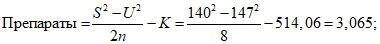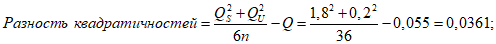 QS и QU - квадратический контраст для стандартного образца и испытуемого препарата в дисперсионном анализе;