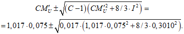 t = 2,5638 + 5,49059/f + 2,72654/f2 + 31,2446/f3 + 21,6745/f10 при P = 99%.