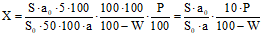 W - влажность сырья, %.