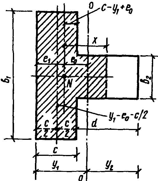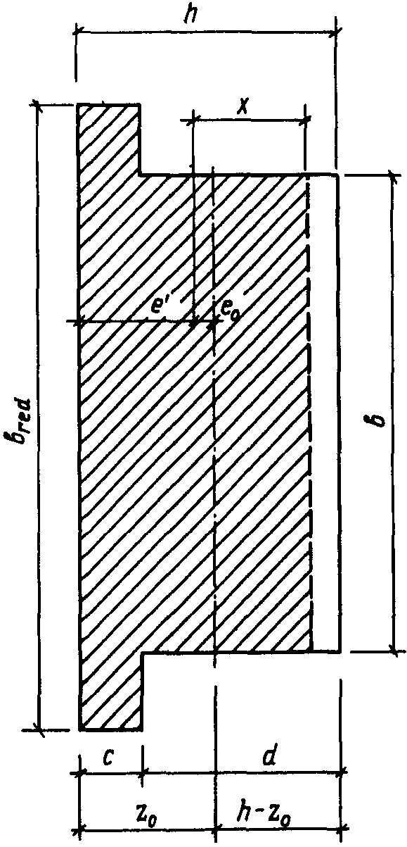 b - ширина сжатой полки или толщина стенки таврового сечения в зависимости от направления эксцентриситета;