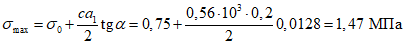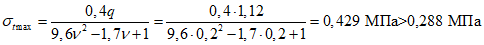 - максимальное напряжение над опорой рандбалки;