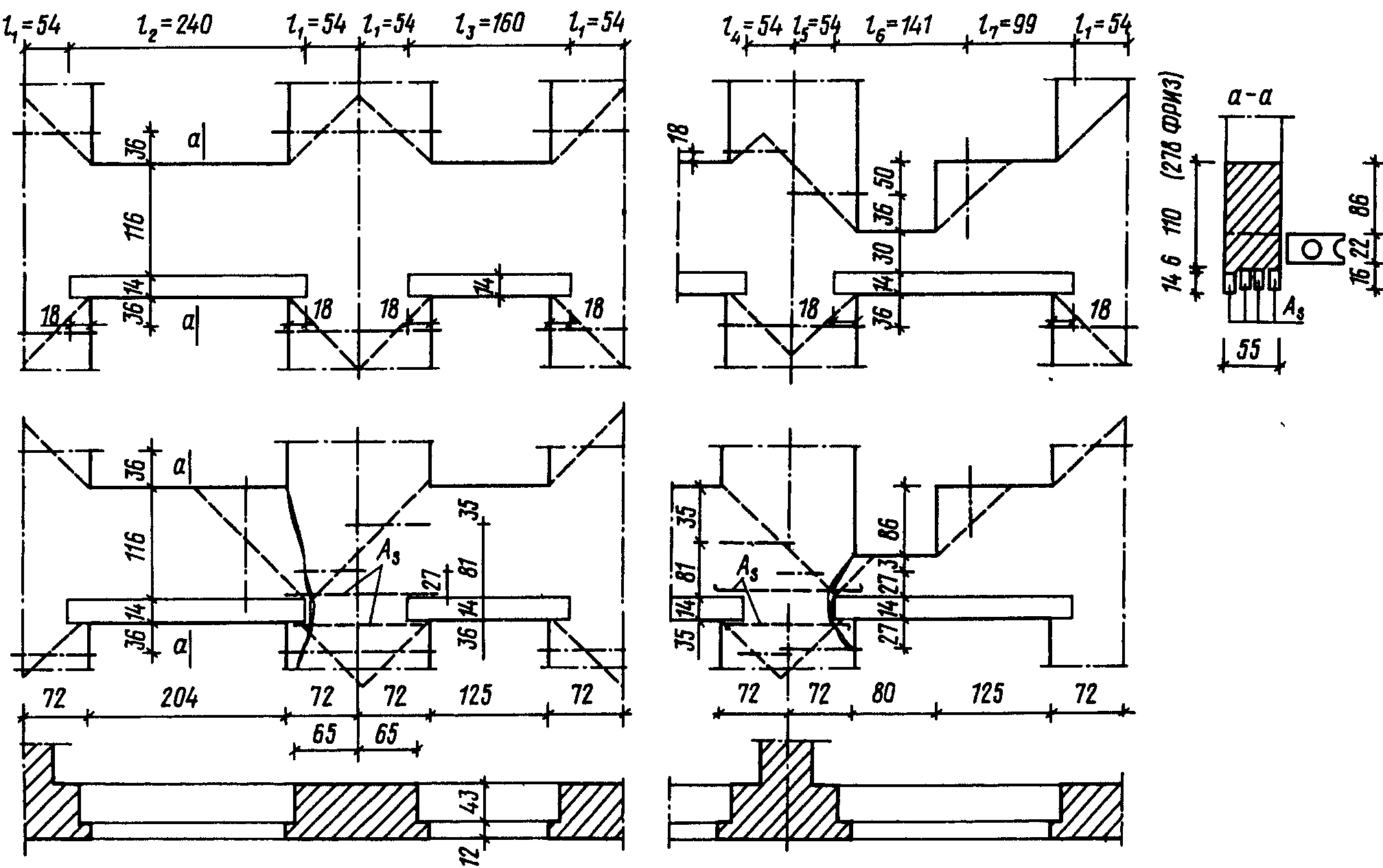 - высоты сжатой части элементов в сечениях с максимальными изгибающими моментами;