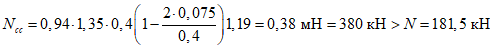 - эксцентриситет действия расчетной нагрузки;