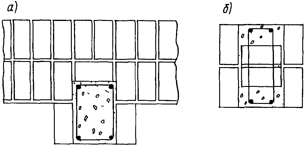 Во избежание утолщения наиболее нагруженных стен и столбов, где это необходимо по расчету прочности конструкций, следует применять кирпич марок 150 и выше или усиление простенков и столбов сетчатым армированием или железобетоном (комплексные конструкции).