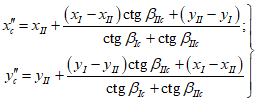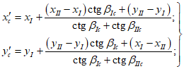 Полученные значения координат X и Y верхней и нижней марок дают возможность вычислить в каждом цикле по формулам, совершенно аналогичным