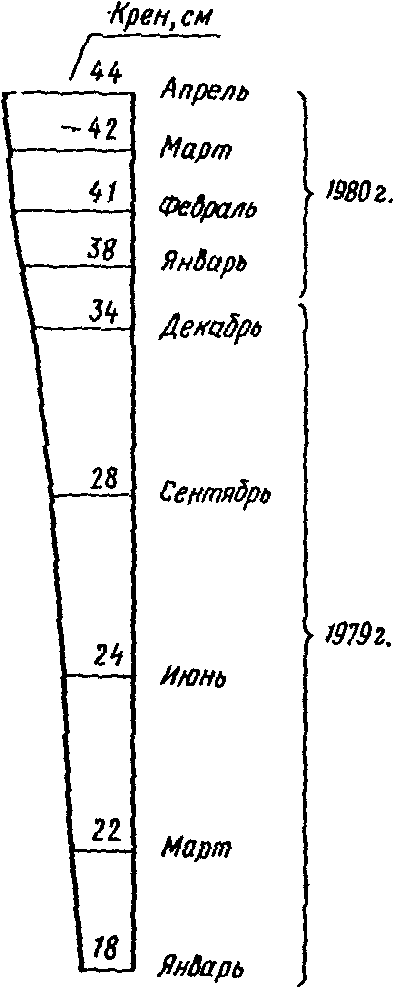 Поэтому в проектах высоких сооружений предусматривается наряду с наблюдениями за осадками оснований и фундаментов проведение натурных измерений кренов как в процессе строительства, так и особенно в процессе эксплуатации.