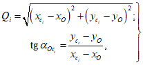 Под линейной величиной абсолютного крена в i-м цикле наблюдений понимается отрезок между проекциями центра подошвы фундамента и положения центра верхнего сечения сооружения на координатную (горизонтальную) плоскость. Приращение крена в линейной мере представляет собой расстояние (отрезок) между проекциями положений центра верхнего сечения сооружения в двух циклах наблюдений на координатную плоскость.