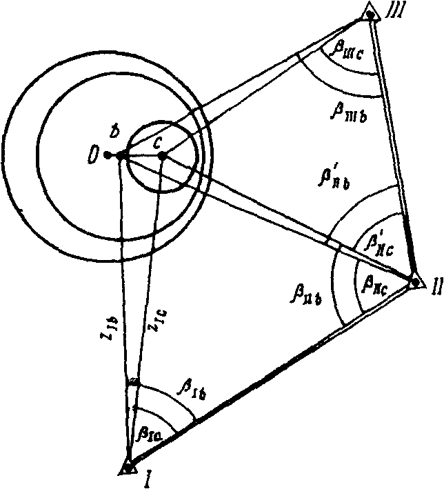 Положение их относительно базиса определяют с концов базиса прямой угловой засечкой.