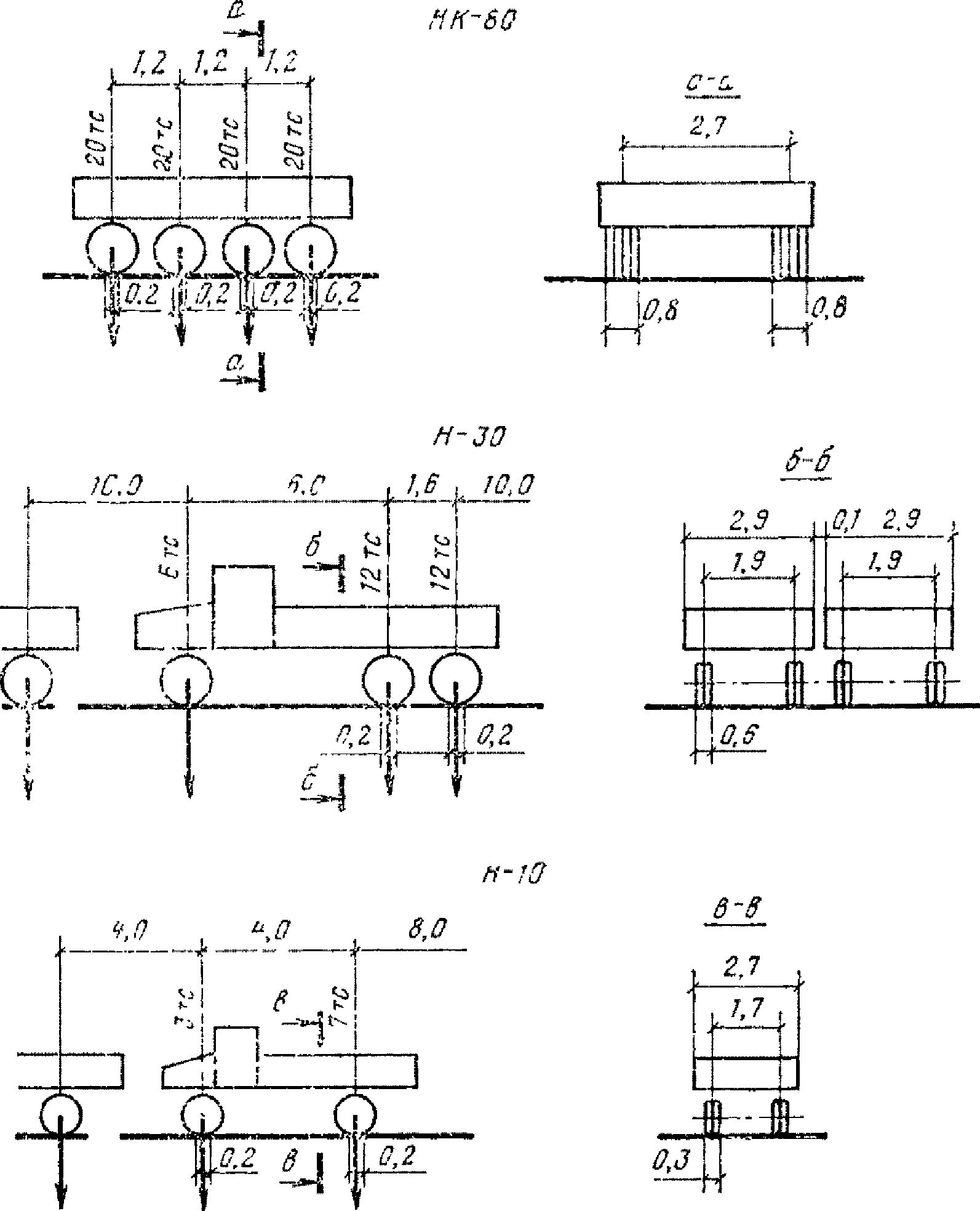 Nдл = 12,5 + 11,8·0,2 = 14,86 тс; Nк = 1,2 + 1·0,2 = 1,4 тс.