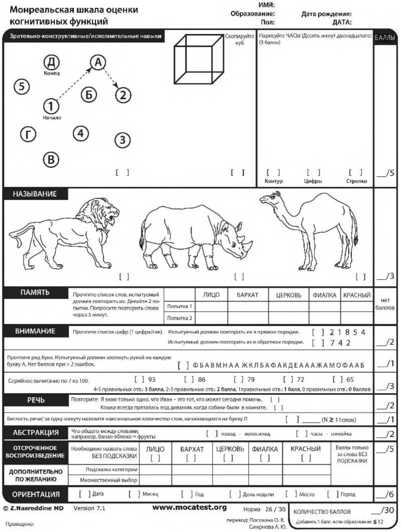 МОНРЕАЛЬСКАЯ ШКАЛА ОЦЕНКИ КОГНИТИВНЫХ ФУНКЦИЙ