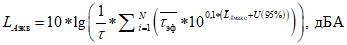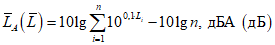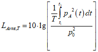 Эквивалентный уровень звука A, LAэкв,T, дБA - величина, равная десяти десятичным логарифмам отношения квадрата среднеквадратичного звукового давления на заданном временном интервале, измеренного при стандартной частотной характеристике измерительной системы по