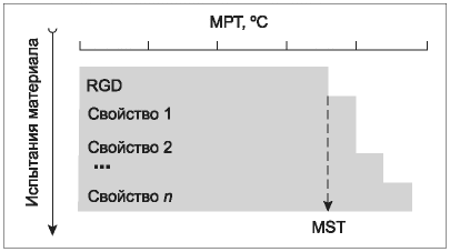 3.13 максимальная допустимая температура эксплуатации полимерного материала по группе параметров; MST: Максимальная температура, при которой все контролируемые параметры соответствуют заданным условиям работоспособности.