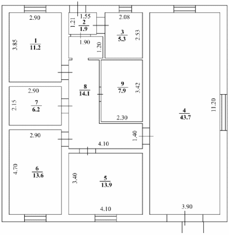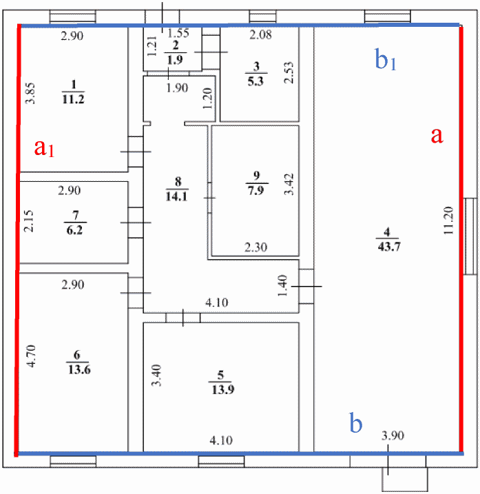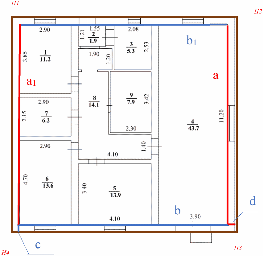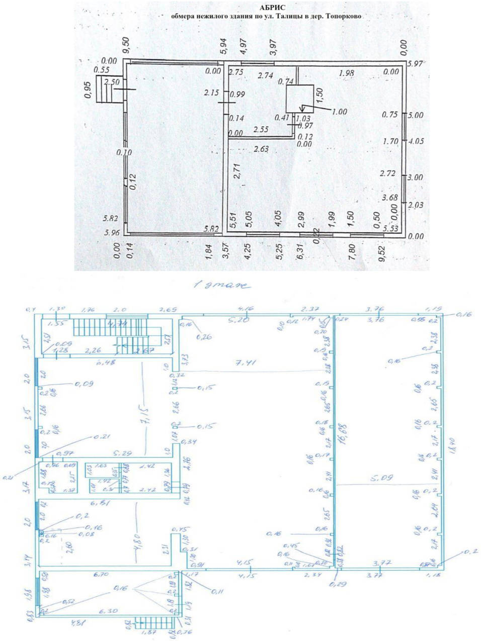 3.1.1. абрис: сделанный от руки внемасштабный, но с соблюдением пропорций, чертеж с обозначением в нем данных, необходимых для составления поэтажного плана здания;