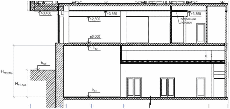 антресоль (для общественных зданий): доступная площадка в объеме двусветного помещения, открытая в это помещение, или расположенная в пределах этажа с повышенной высотой, размером менее 40% площади помещения, в котором она находится. Антресоль не является этажом. Примечание - На антресоли могут размещаться помещения. антресоль (для производственных зданий): площадка внутри здания, на которой размещены помещения различного назначения (производственные, административно-бытовые или для инженерного оборудования). |