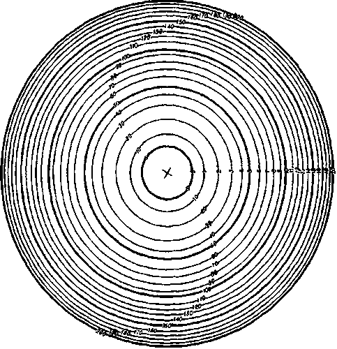 Примечание. Величины R могут подписываться непосредственно на окружностях палетки.
