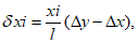 вводится в тех случаях, когда разностная деформация аэронегатива вдоль осей Y и X превышает 0,2 мм. Эта поправка принимается постоянной для данного фильма аэрофотосъемки и вычисляется по формуле: