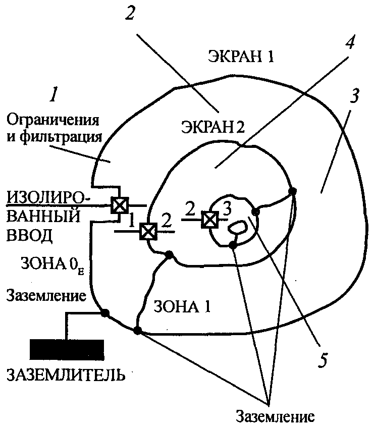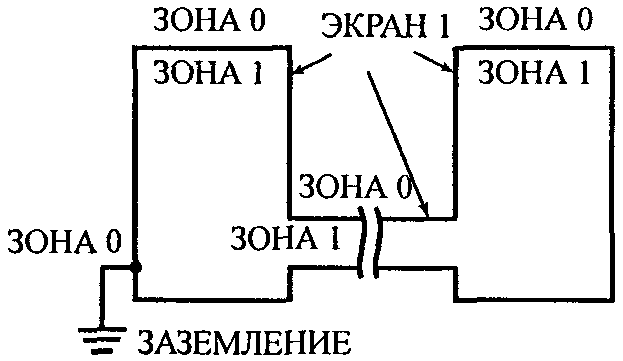 Любое дополнительное экранирование, например, прокладка проводов и кабелей в металлических трубах или лотках между этажами, снижает полное сопротивление общей системы соединений. Эти меры наиболее важны для высоких или протяженных зданий или когда оборудование должно работать особенно надежно.
