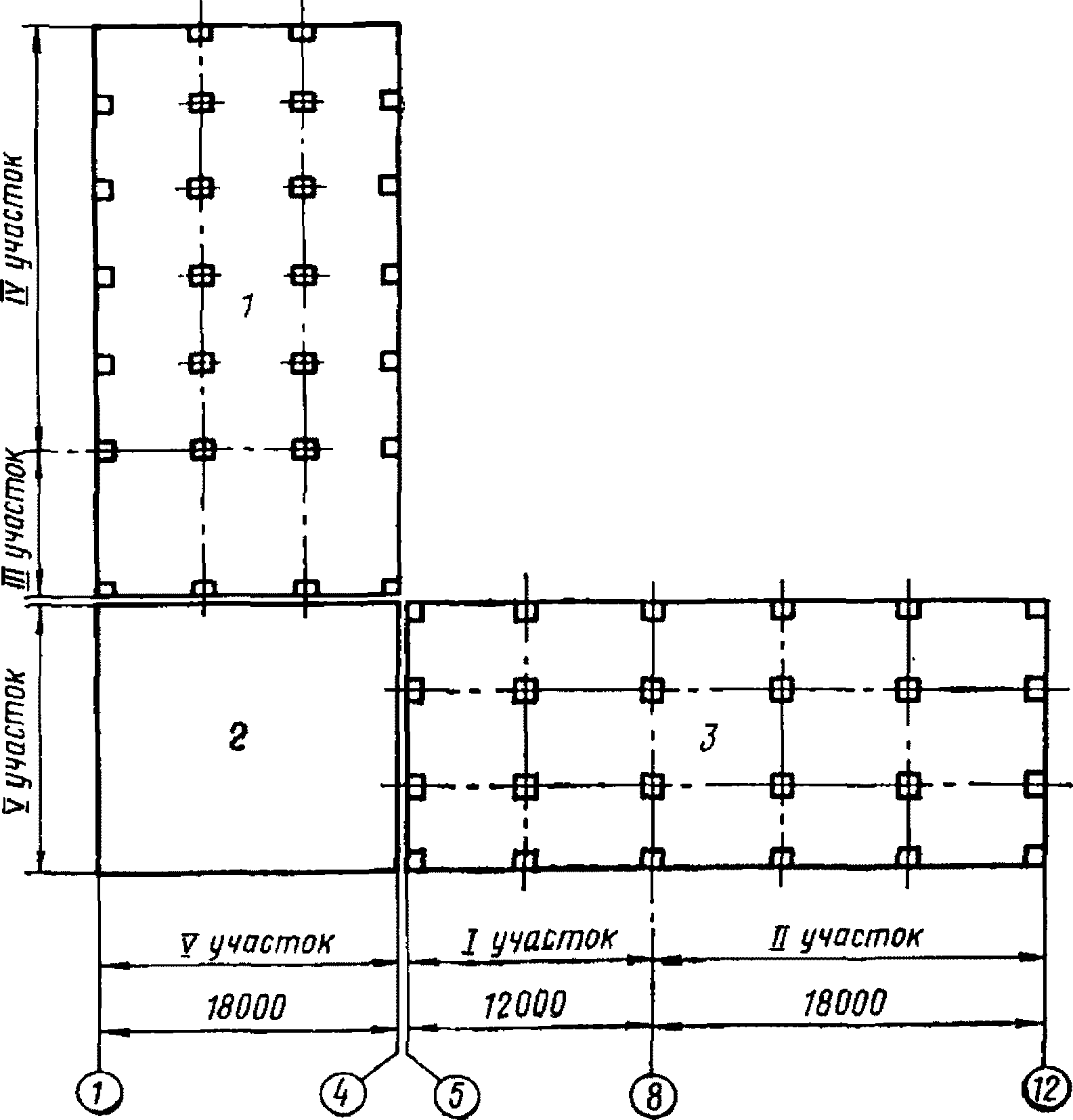 б) при использовании для проходки стволов части башенных копров и временных подъемных машин: частично башенные копры, автомобильные и железные дороги, подземные коммуникации, здание блока вспомогательного ствола (компрессорная, мастерские, склады), котельной, электроподстанции, административно-бытового комбината; полностью - здания подъемных машин, лебедок, резервуар противопожарного запаса воды и временные отстойники шахтных вод;