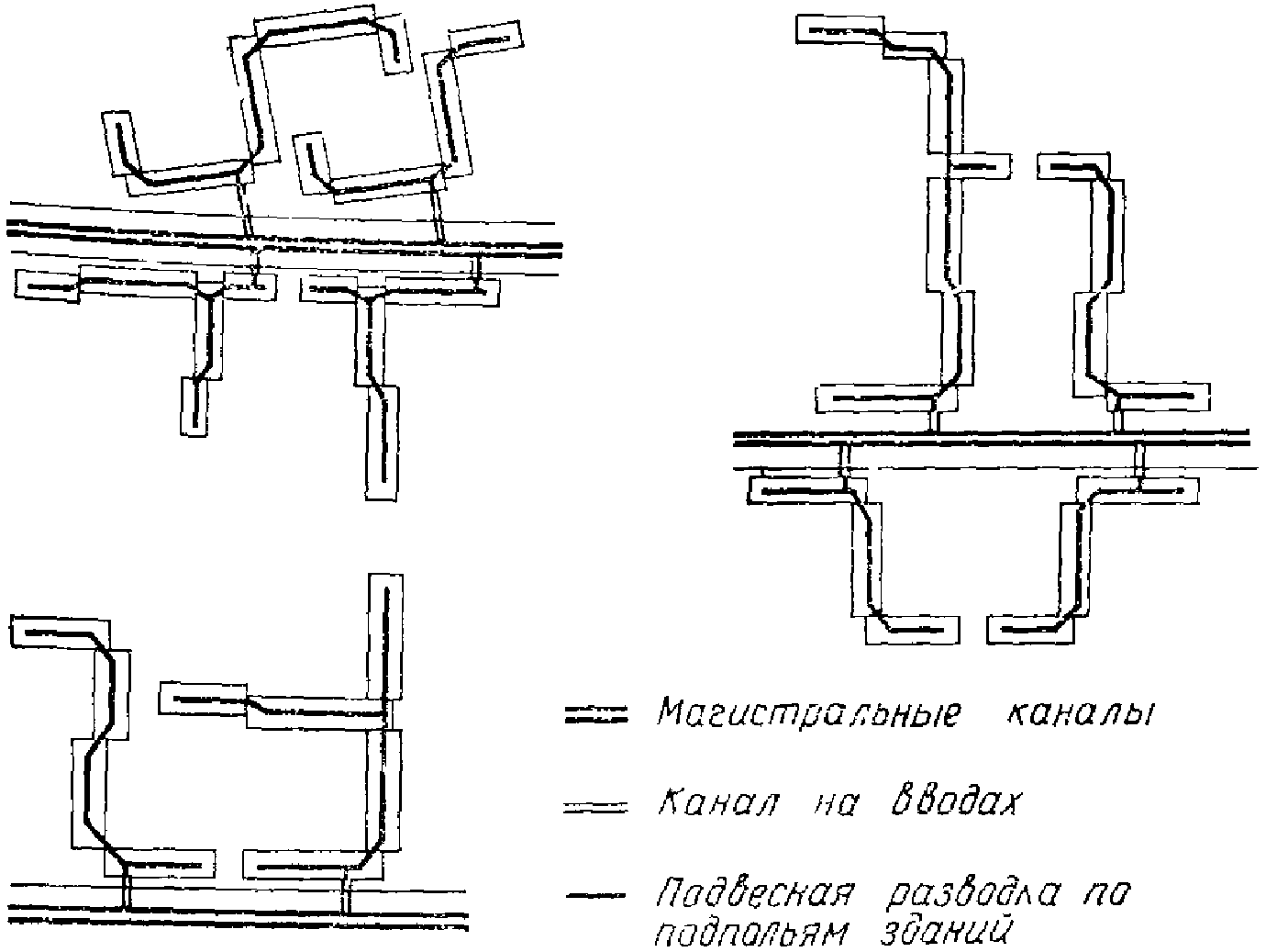 тупиковая схема должна предусматривать подключение крупных потребителей воды в концевых участках (особенно эффективна, когда концевые участки водопровода совпадают с начальными участками канализации), а также устройство сухих перемычек;