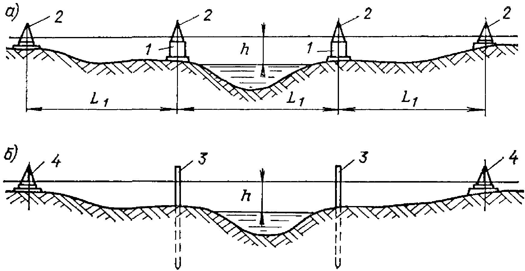 на общих лежневых и городковых опорах (рис. 2) или на свайных опорах